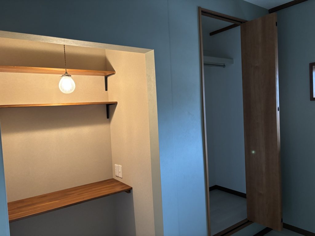和室の押入れ、床の間をリモートデスクにしたり、クローゼットにしたりリフォームしました。